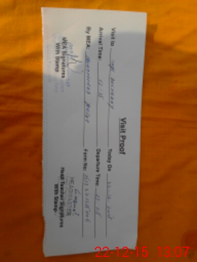 | Attendance Register | Head Teacher | MEA with School | Visit Proof |