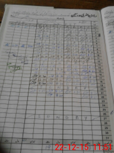 | CNIC | Full Name | Designation | R/C | Absence During Last Calender Month |