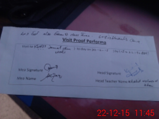 | Attendance Register | Head Teacher | MEA with School | Visit Proof |