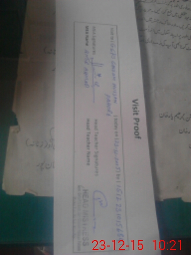 | School Visited by School Health & Nutrition Supervisor (No. of Visits) | 1 | Name1: | Sohail Munir | Name2: | Nil |