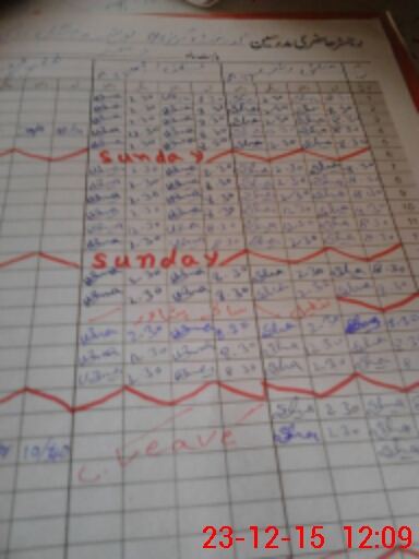 | CNIC | Full Name | Designation | R/C | Absence During Last Calender Month |