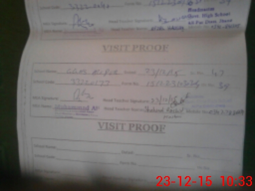 | Attendance Register | Head Teacher | MEA with School | Visit Proof |