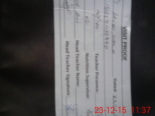 | School Visited by School Health & Nutrition Supervisor (No. of Visits) | 1 | Name1: | Zahid Hussain | Name2: | |