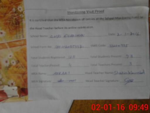 | Certified that this School was Inspected by the Undersigned MEA/DMO Today and the Information Stated Above is as Per Record. | |||||