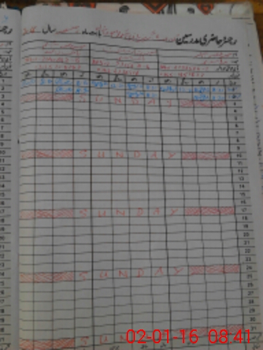 | CNIC | Full Name | Designation | R/C | Absence During Last Calender Month |