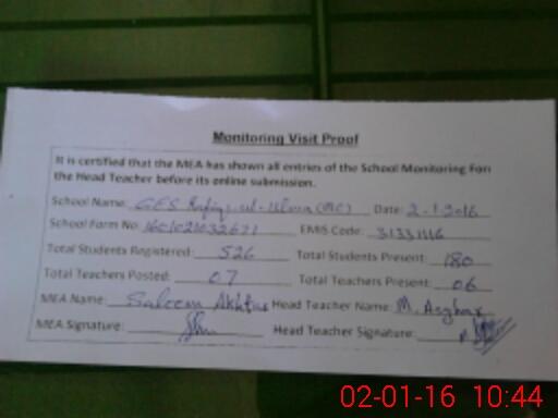 | EMIS Code: 31331116 | Name of School: GES MC RAFIQ-UL-ULMA | |||