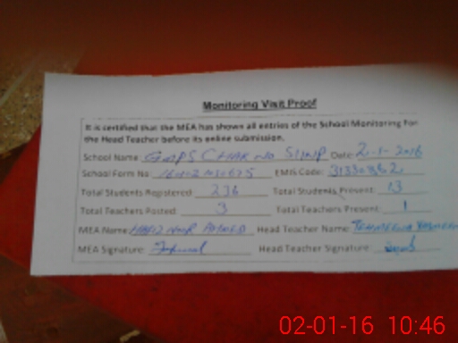 | Attendance Register | Head Teacher | MEA with School | Visit Proof |