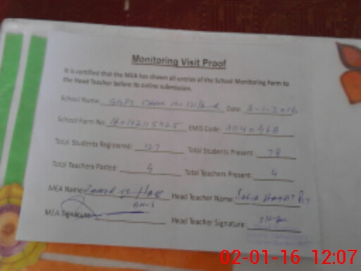 | EMIS Code: 31140468 | Name of School: GGPS CHAK NO 121/6-R | |||