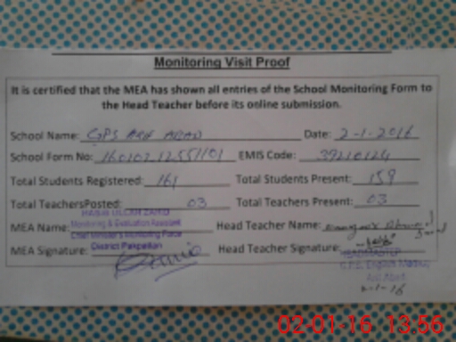 | Certified that this School was Inspected by the Undersigned MEA/DMO Today and the Information Stated Above is as Per Record. | |||||