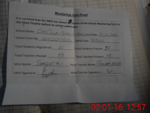 | Certified that this School was Inspected by the Undersigned MEA/DMO Today and the Information Stated Above is as Per Record. | |||||