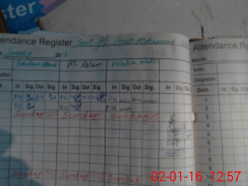 | CNIC | Full Name | Designation | R/C | Absence During Last Calender Month |