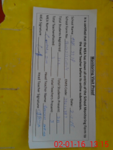 | Attendance Register | Head Teacher | MEA with School | Visit Proof |