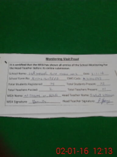 | Certified that this School was Inspected by the Undersigned MEA/DMO Today and the Information Stated Above is as Per Record. | |||||