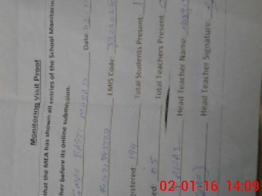 | Attendance Register | Head Teacher | MEA with School | Visit Proof |
