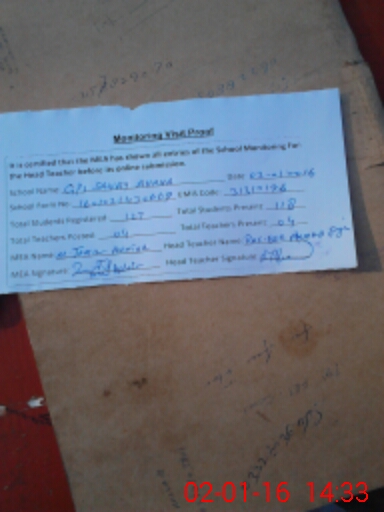 | Attendance Register | Head Teacher | MEA with School | Visit Proof |