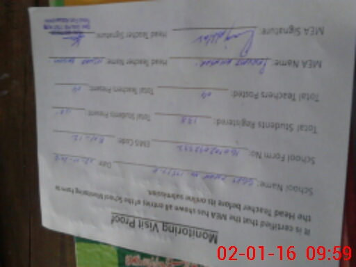 | Attendance Register | Head Teacher | MEA with School | Visit Proof |