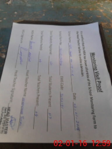 | Attendance Register | Head Teacher | MEA with School | Visit Proof |