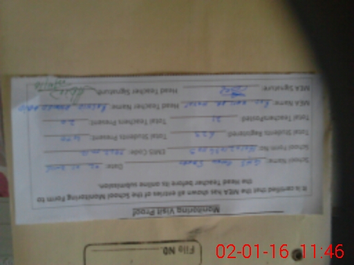 | Attendance Register | Head Teacher | MEA with School | Visit Proof |