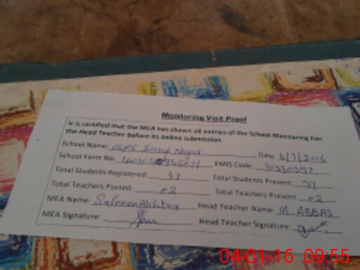 | Attendance Register | Head Teacher | MEA with School | Visit Proof |