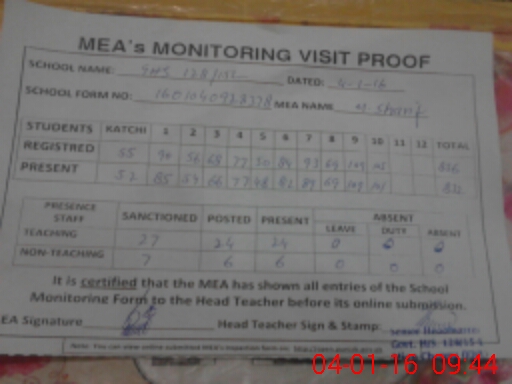 | Certified that this School was Inspected by the Undersigned MEA/DMO Today and the Information Stated Above is as Per Record. | |||||