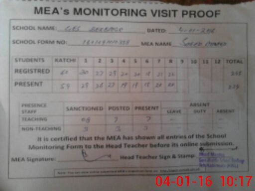 | EMIS Code: 36410217 | Name of School: GES BARBEGY, P/O QATAL PUR, SARAI SIDHU | |||