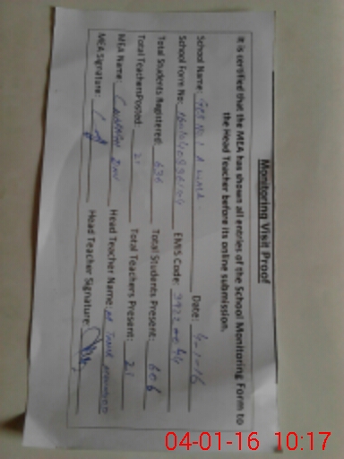 | Certified that this School was Inspected by the Undersigned MEA/DMO Today and the Information Stated Above is as Per Record. | |||||