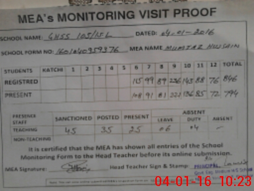 | Certified that this School was Inspected by the Undersigned MEA/DMO Today and the Information Stated Above is as Per Record. | |||||