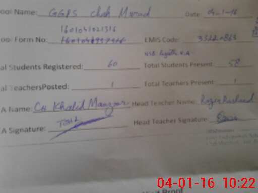 | Name: KH**** PE**** Designation: (School Headmaster's/Headmistress's) PST Phone/Cell Number: 03**** |