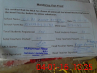 | Attendance Register | Head Teacher | MEA with School | Visit Proof |