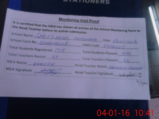 | Attendance Register | Head Teacher | MEA with School | Visit Proof |