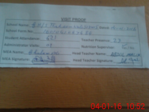 | Attendance Register | Head Teacher | MEA with School | Visit Proof |