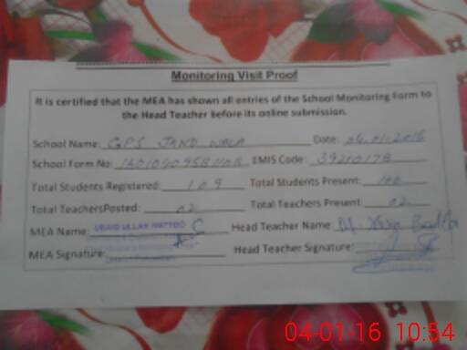 | EMIS Code: 39210178 | Name of School: GPS JAND WALA PO PAKPATTAN | |||