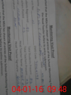 | Attendance Register | Head Teacher | MEA with School | Visit Proof |