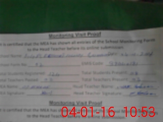 | Attendance Register | Head Teacher | MEA with School | Visit Proof |