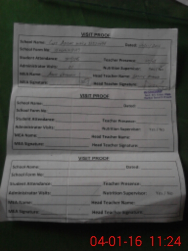 | Attendance Register | Head Teacher | MEA with School | Visit Proof |
