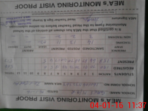 | Attendance Register | Head Teacher | MEA with School | Visit Proof |
