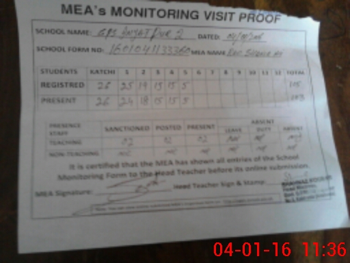 | Attendance Register | Head Teacher | MEA with School | Visit Proof |