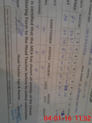 | Certified that this School was Inspected by the Undersigned MEA/DMO Today and the Information Stated Above is as Per Record. | |||||