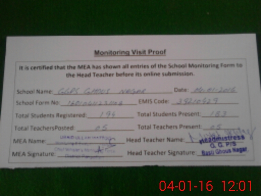 | EMIS Code: 39210429 | Name of School: GGPS BASTI GHOUS NAGAR | |||