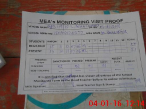 | Attendance Register | Head Teacher | MEA with School | Visit Proof |