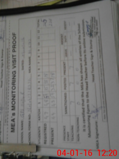 | Attendance Register | Head Teacher | MEA with School | Visit Proof |