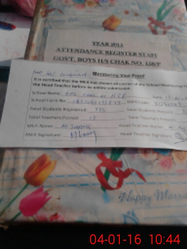 | Attendance Register | Head Teacher | MEA with School | Visit Proof |