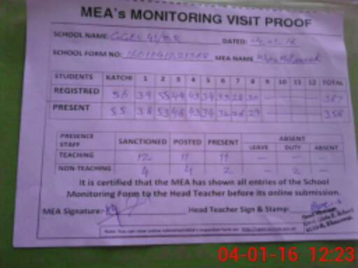 | Attendance Register | Head Teacher | MEA with School | Visit Proof |
