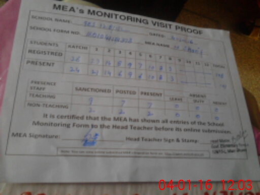 | Attendance Register | Head Teacher | MEA with School | Visit Proof |