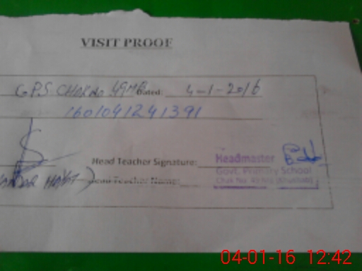 | EMIS Code: 38210260 | Name of School: GPS CHAK NO 49 MB | |||