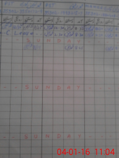 | CNIC | Full Name | Designation | R/C | Absence During Last Calender Month |
