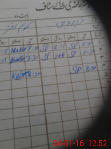 | CNIC | Full Name | Designation | R/C | Absence During Last Calender Month |