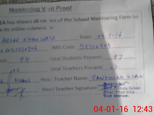 | EMIS Code: 38310204 | Name of School: GPS ABBIZAR KHAN WALA | |||