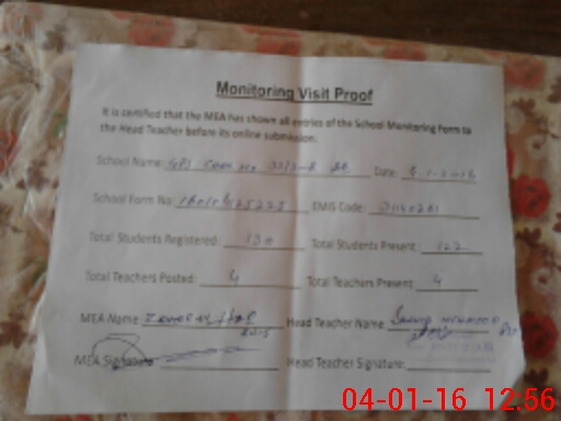 | Attendance Register | Head Teacher | MEA with School | Visit Proof |