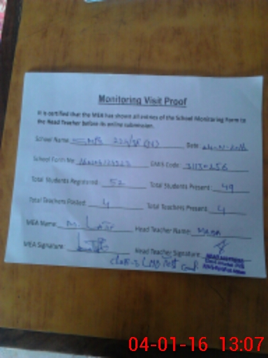 | Attendance Register | Head Teacher | MEA with School | Visit Proof |